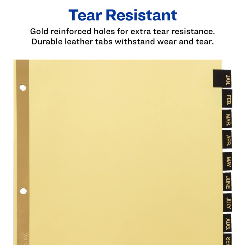 Avery Jan-Dec Dividers for 3 Ring Binders, 12-Tab Sets, Pre-Printed Black Leather Tabs, 3 Binder Divider Sets (26180)