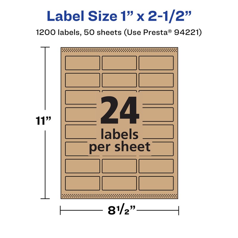 Avery Kraft Brown Rectangle Labels with Sure Feed, 1" x 2.5", 1,200 Kraft Brown Labels, Laser/Inkjet Printable Labels