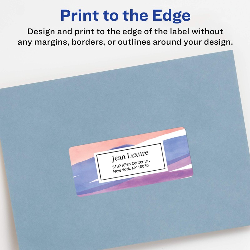 • Print rectangle stickers with beautiful full-bleed designs that fill the entire label with the print-to-the-edge feature