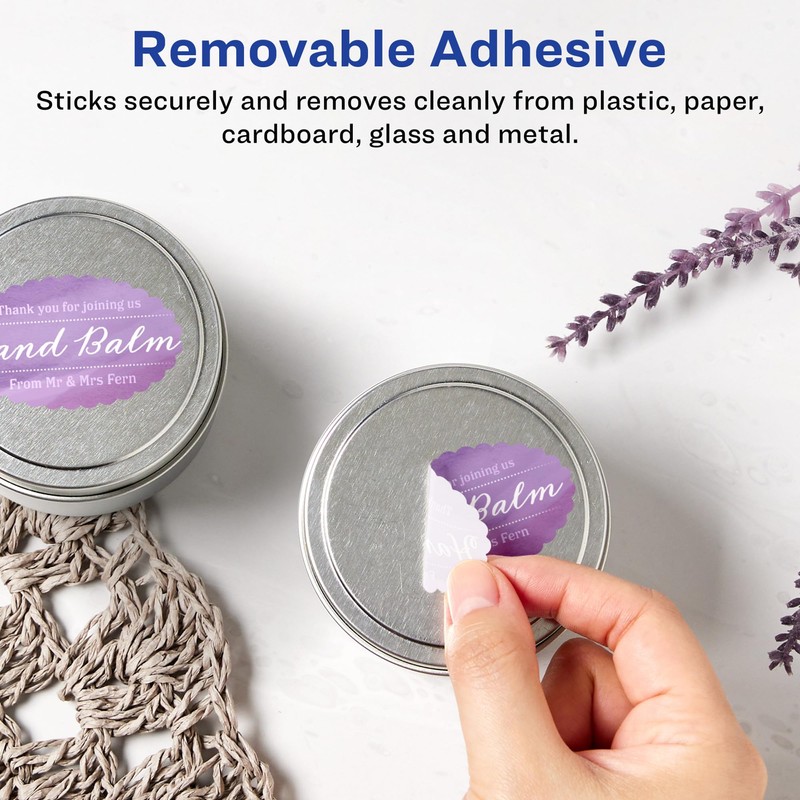 Avery Matte White Removable Oval Scalloped Labels, Sure Feed Technology, Print-to-The-Edge, 2" x 3", 120 Removable Labels, Laser/Inkjet Printable