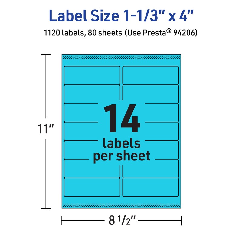 - Elevate your branding with Avery printable colored labels! Create your own customizable labels with Avery template Presta 94206