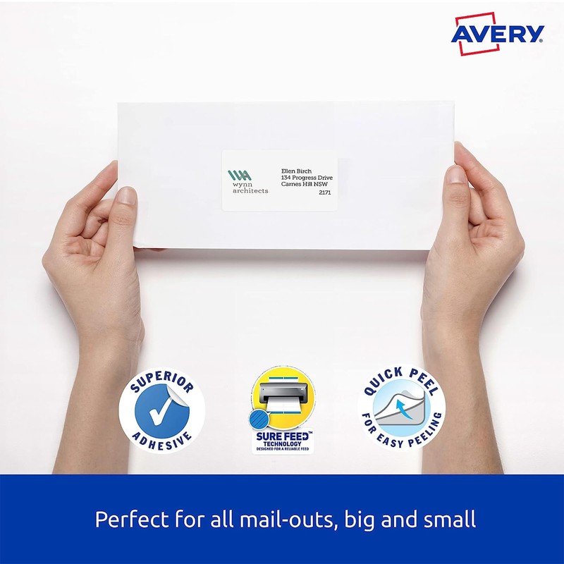 - Avery Address Labels feature Quick Peel which ensures easy and fast removal of the label from the A4 paper sheet, making them easy to use and the perfect addition to your office supplies.