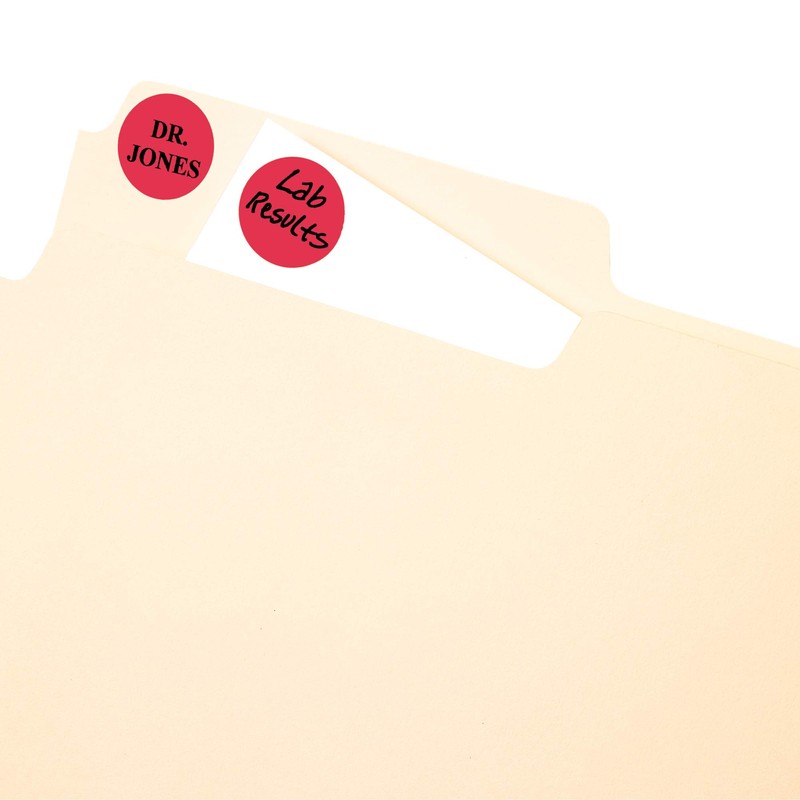 • Manage and identify files efficiently; bold colored red dot stickers allow for effective color coding and organizing for home, office, or school