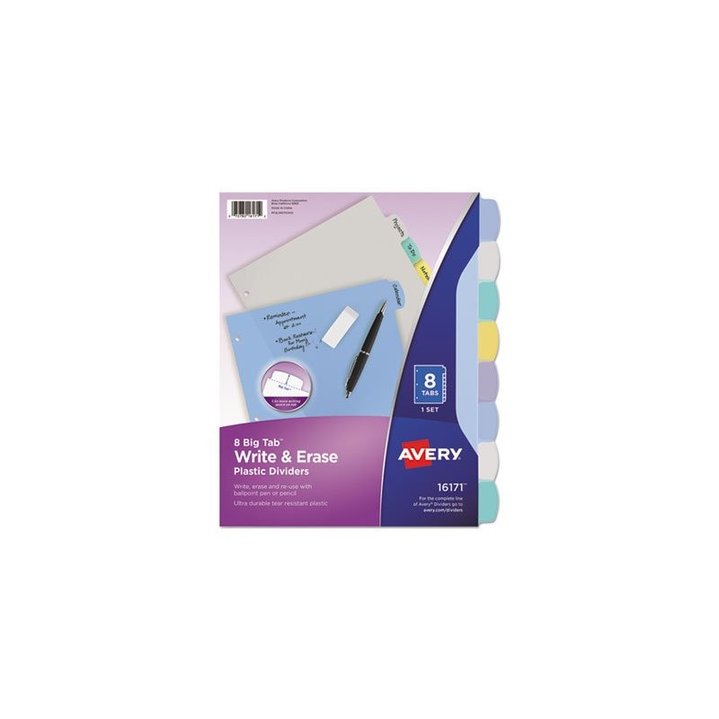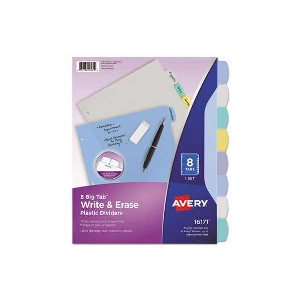 Avery Write & Erase Big Tab Plastic Dividers, 8-Tab, Letter