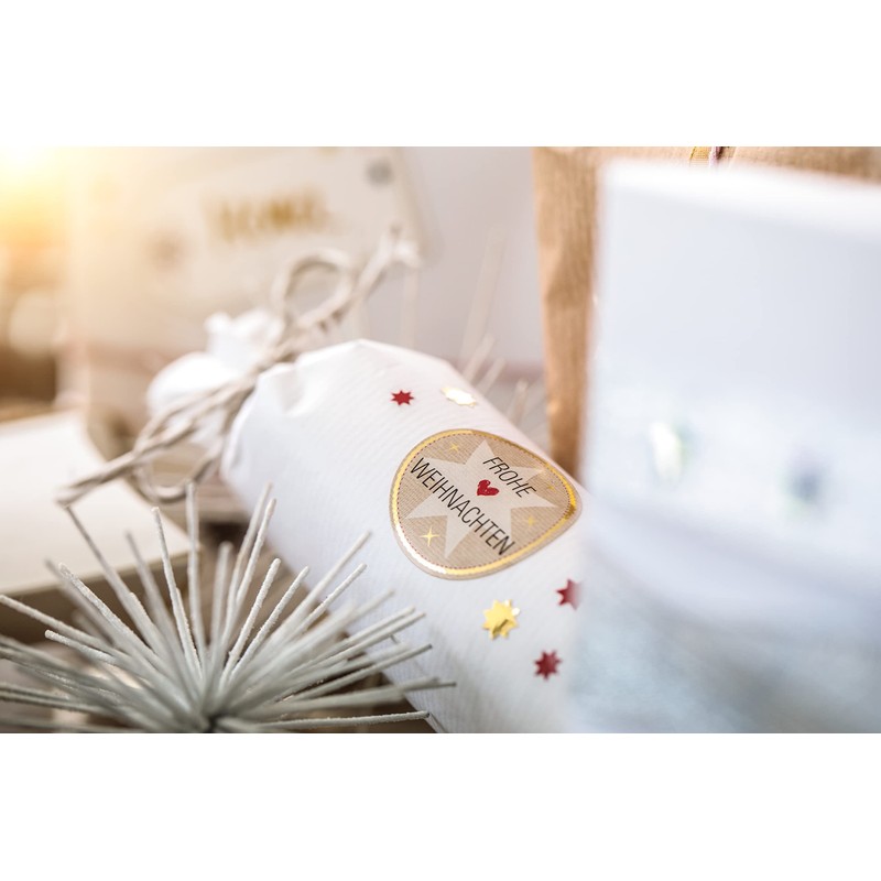 - High-quality, removable paper material in a natural look with loving Christmas wishes and elegant gold embossing.