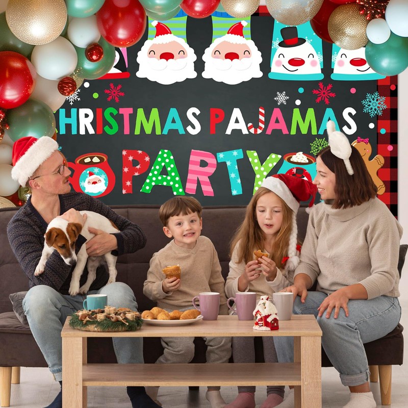 - LARGE SIZE: You will get 1 piece of 7x5 ft (84 " W x 60 " H) Christmas pajama party backdrop that is large enough to hold multiple people for party decorations and photos; Easy to accessorize around with balloon garland kit