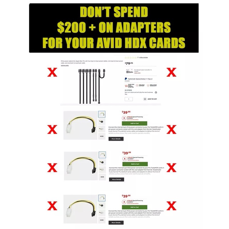 AVID HDX PCIE POWER CABLE ADAPTER CONVERTS OLD MAC PRO CABLE TO MAC PRO 2019+