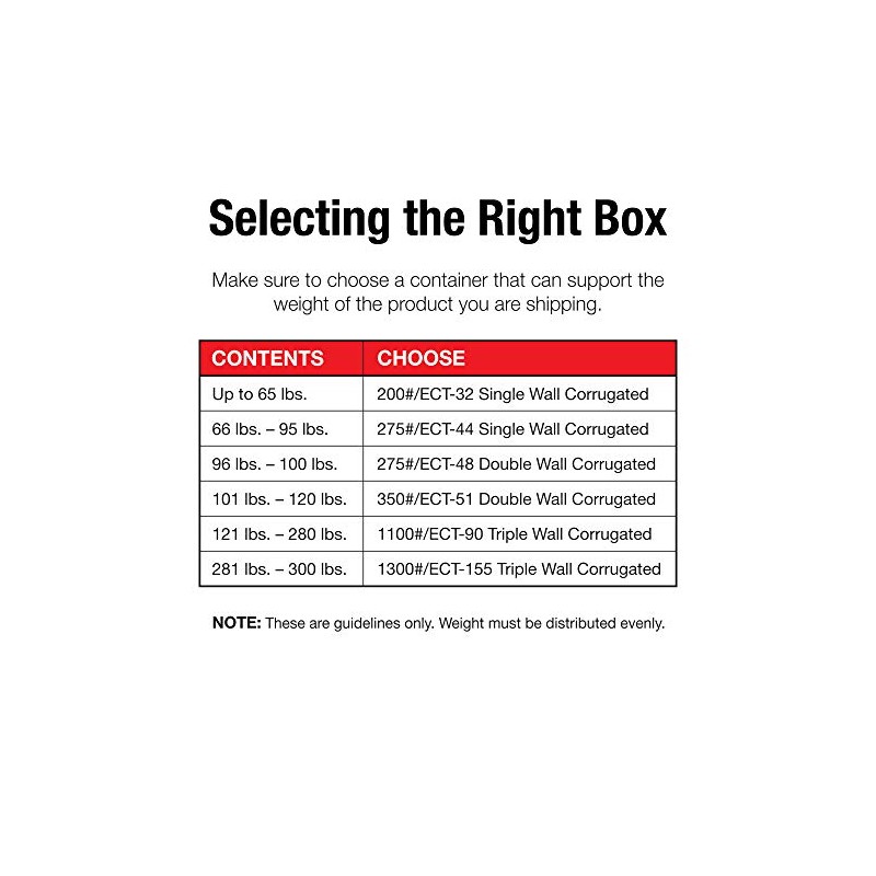 - MATERIAL & STRENGTH: Standard strength industrial corrugated boxes are manufactured from 200#/ECT-32 single wall, c-flute kraft corrugated Estimated weight capacity is 65 lbs (This is only a guide, weight must be distributed evenly)