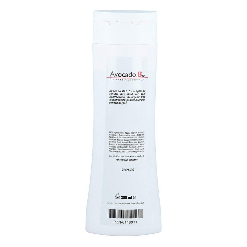 Shake before use. Spread a small amount of avocado.B12 shower care on damp skin and massage in lightly then rinse with lukewarm water briefly. Also suitable for hair care and very sensitive scalp.