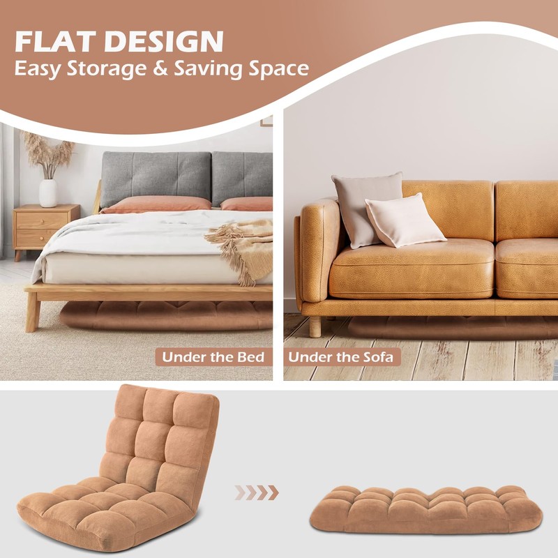 - Universal Usage:Our floor gaming sofa chair can be used as a chair, a couch or a bed according to different angles. As an armless floor chair, it will provide you a comfy space for reading, studying, watching TV, or meditation. As a floor recliner sofa, you can have a good nap and rest. As a bed, it is perfect for sleeping for a long period.