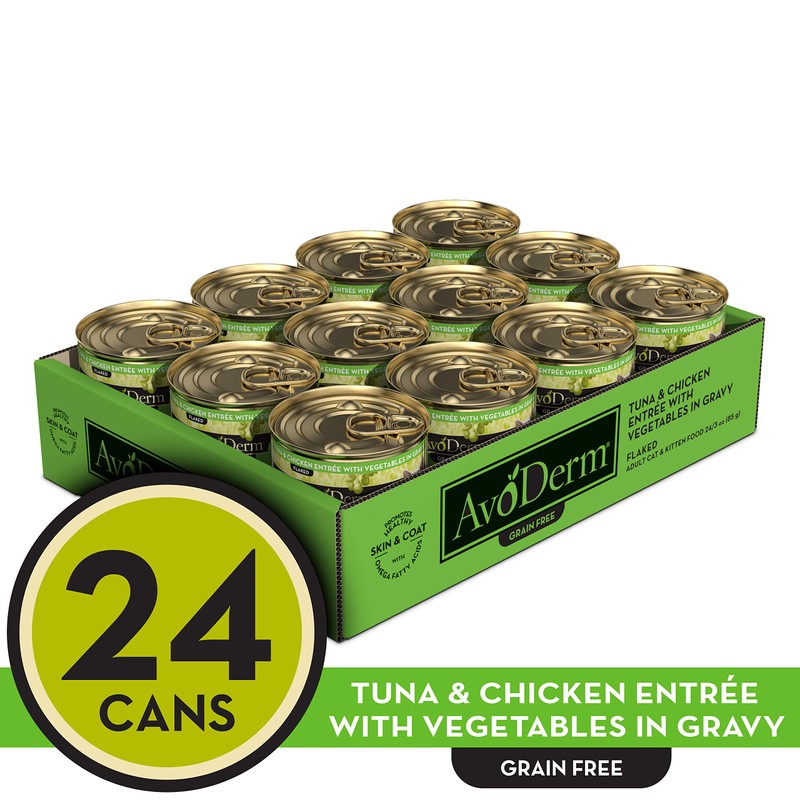 - Twenty-Four (24) 3 Oz. Cans: Avoderm Natural Grain Free Tuna & Chicken Entree Canned Wet Cat Food