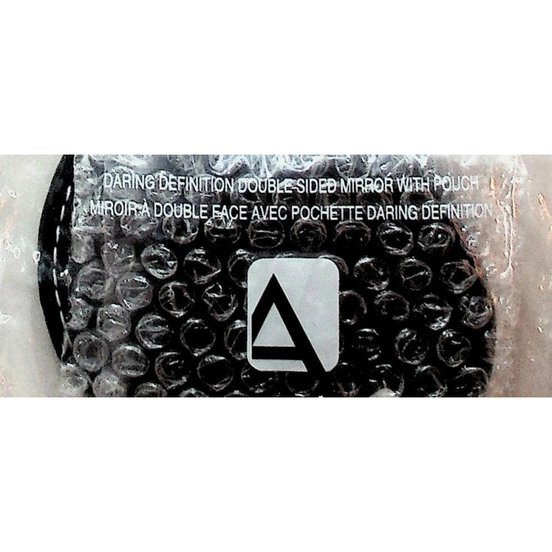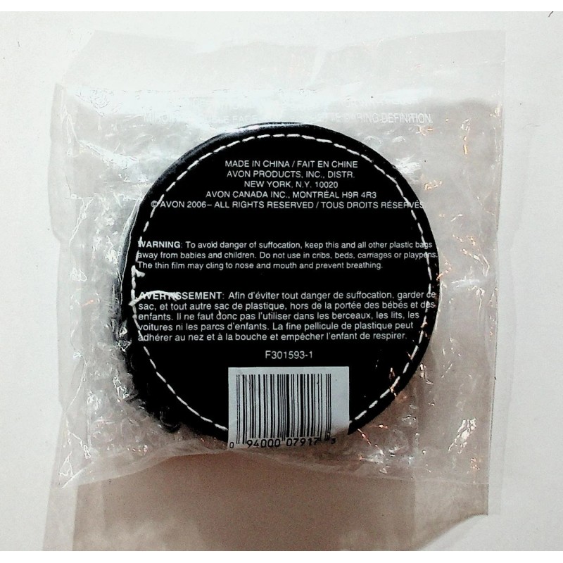 Stay flawless on the go with the Avon Daring Definition Double Sided Mirror. This chic travel compact comes with a protective pouch and features two mirrors — one regular and one magnifying — for perfect touch-ups anywhere. The sleek black design with white stitching makes it a stylish addition to any handbag or makeup kit.