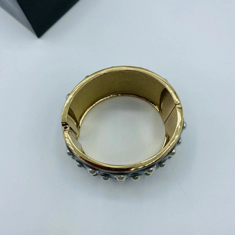 Avon Mark Black White Faux Pearl Beaded Clamper Bracelet NIB