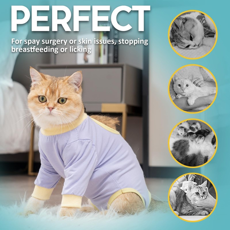 Avont Cat Bodysuit After Surgery Recovery Suit Clothing Modal Recovery Castration Spay Weaning Leak Protection Suit for Cat, Abdominal Wounds or Skin Diseases S Lavender