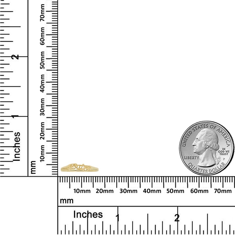 - Set the stage for fashion with this charming 10K Yellow Gold ring which features the word "Baby" in flowing font.