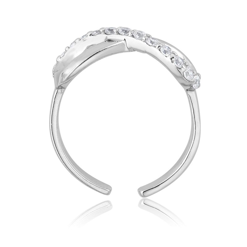 - This gorgeous 925 Sterling Silver toe ring is designed with a sideways infinity symbol that is partially embedded with Simulated Diamond Cubic Zirconia (CZ). Adjustable and fits most people.