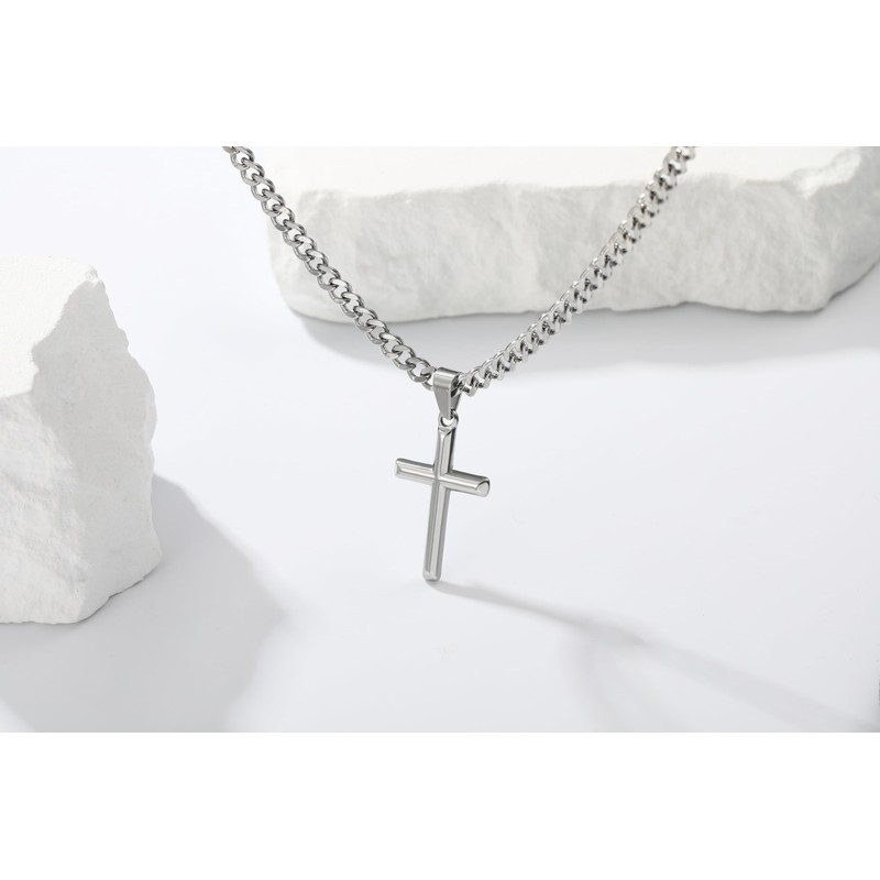 - Minimalist Design:Silver cross necklace for men use simple and elegant chain design, classic cross pendant,wearing this mens silver cross chain will show off your elegance.This mens cross chain necklace suitable for everyday wear.