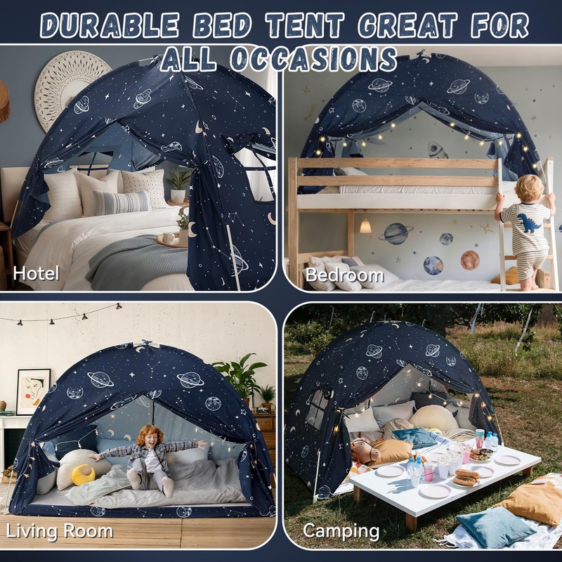 - Full bed dream tent - Large enough for all full beds, It can provide a good sleep at night, kid's secret base, and easy to clean and machine washable