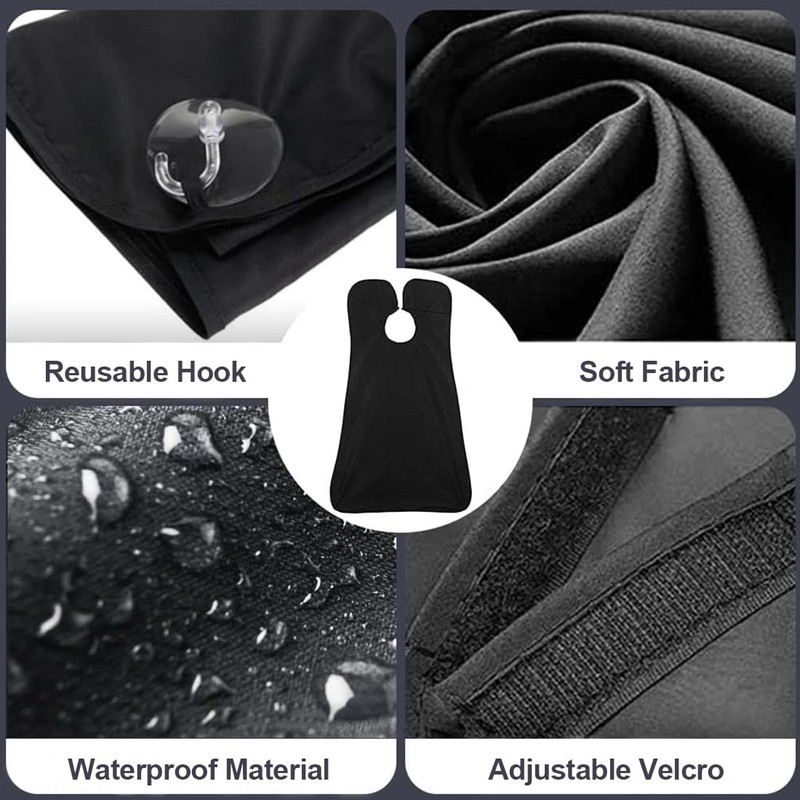 Easy to use: simply place camping screw pegs on the collar and attach to the suction cup of the mirror. After shaving, simply remove the apron from the suction cup and wipe the surface in the basket.