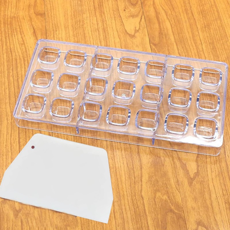 Avtytsda 21 Grid Chocolate Candy Mold PC Polycarbonate Chocolate Making Mould with Scraper (Cube Shape)