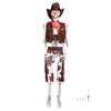 - [Chic Cowboy Look]:5 5/12 ft Tall Full Body Skeleton Halloween Decoration boasts its trending cowboy look with a complete outfit of western hat, red scarf, fringe vest, and pants, paired with realistic human bones and bloodshot eyeballs for a realistic and spooky appearance, great for decorating your haunted house or front yard to add bone-chilling excitement for any trick-or-treaters