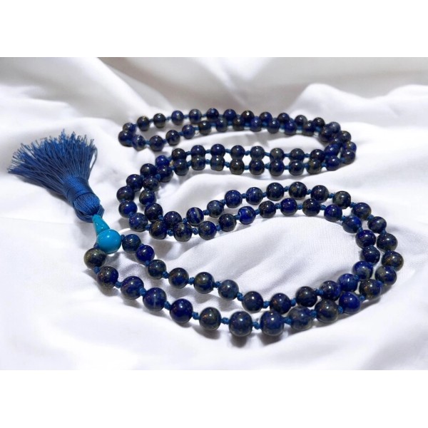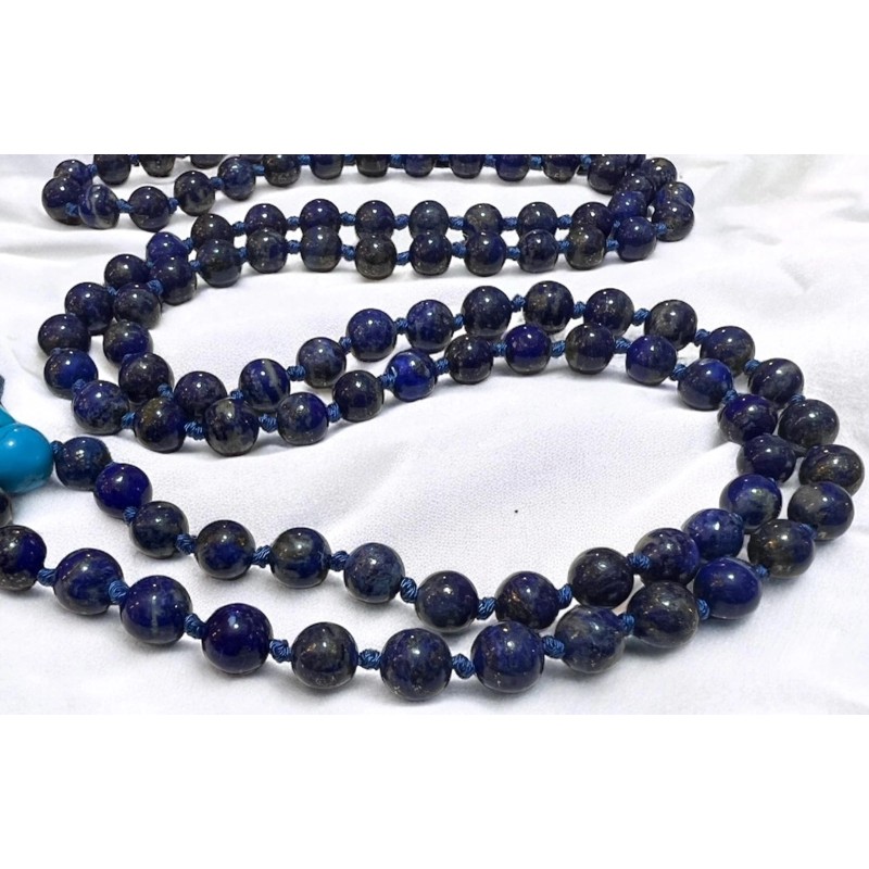 Enhance your spiritual journey with our Hand Knotted 10mm Lapis Lazuli Mala Beads Necklace. This exquisite piece is made from genuine natural Undyed Lapis Lazuli beads, each meticulously hand-knotted to ensure durability and elegance. Known for its deep blue hue and golden flecks, Lapis Lazuli is a powerful gemstone associated with the Third Eye and Throat Chakras. It is revered for its ability to enhance intuition, communication, and spiritual awareness. Perfect for meditation, prayer, or as a meaningful accessory, this mala necklace is a beautiful addition to any collection. Key Features: Premium Quality: Crafted from high-quality 10mm Lapis Lazuli beads, each with unique variations. Healing Properties: Lapis Lazuli is known for its ability to enhance intuition, improve communication, and promote spiritual growth. Chakra Association: Associated with the Third Eye and Throat Chakras, aiding in spiritual awareness and clear communication. Hand Knotted: Each bead is hand-knotted for added strength and durability, ensuring a long-lasting and beautiful piece. Versatile Use: Suitable for meditation, prayer, yoga, or as a stylish and meaningful accessory. Elegant Design: Combines the deep blue beauty of Lapis Lazuli with meticulous craftsmanship. #LapisLazuli #MalaBeads #MeditationNecklace #HealingGemstones #YogaJewelry #SpiritualJewelry #ThirdEyeChakra #ThroatChakra #PrayerBeads #HandKnottedMala #108Beads #CrystalHealing #IntuitionBoost #GemstoneNecklace #MindfulnessJewelry #WellnessJewelry #ArtisanCrafted #EnergyHealing #ChakraBalancing #NaturalGemstones #SpiritualAccessories