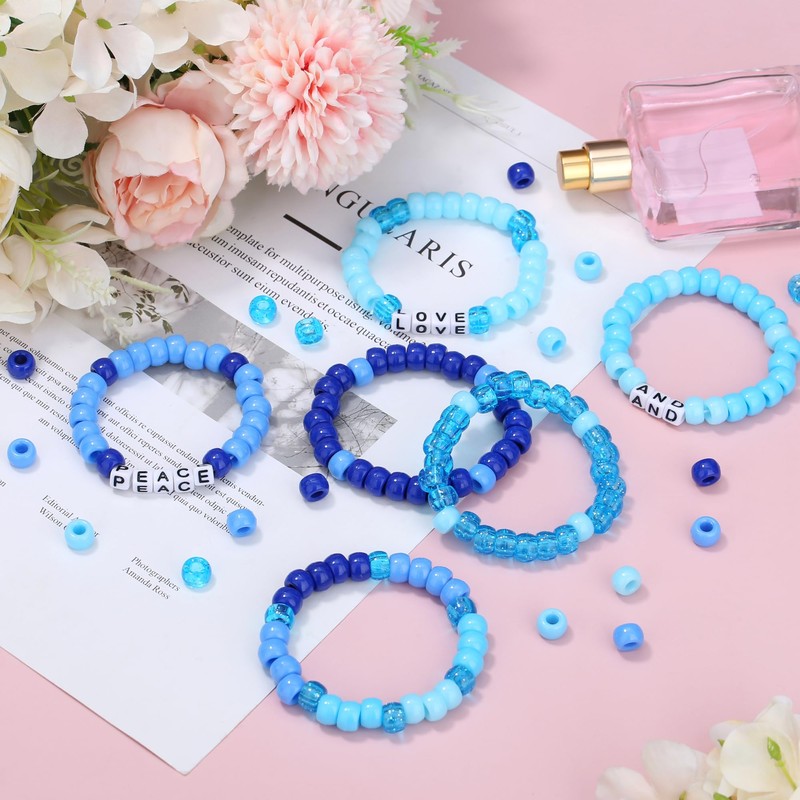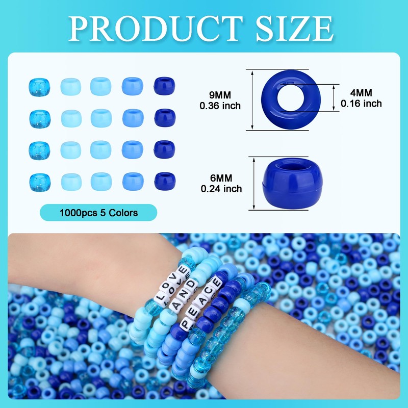 AWARDSEN 1000 PCS Pony Beads Bulk Assorted Pony Beads for Kandi Bracelet Making Kit Phone Charm DIY for Bracelet Jewellery Making Supplies 6x9mm Blue Classic Multicolour Gradient