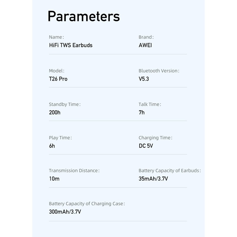 AWEI Słuchawki Bluetooth 5.3 T26 Pro TWS Black Brand