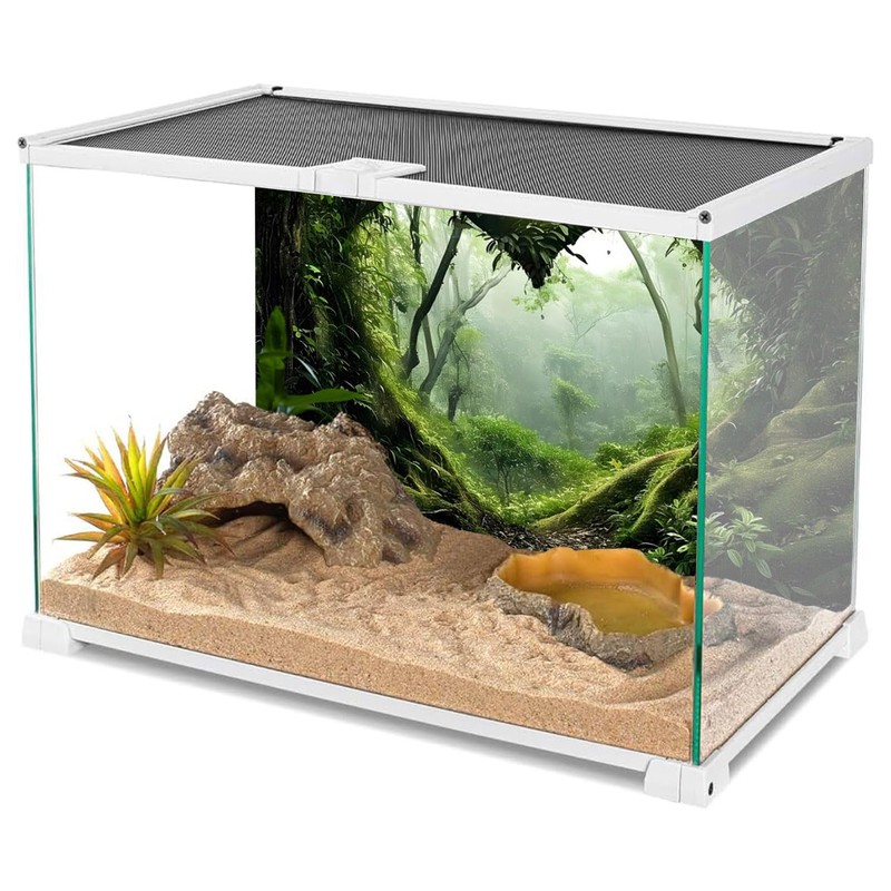- Fits Most Aquarium,Terrarium,Several sizes of background posters for choosing. Great decor for fish tank and aquarium. Easy to install with the included 8 EVA double-sided tape pieces, allowing you to set up the background securely and quickly