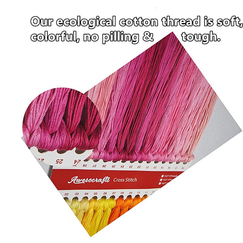 - Accessories: Awesocrafts cross stitch kit with pre-sorted cotton thread, high quality fabric, needles and English instructions