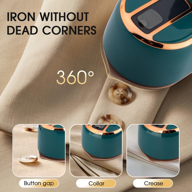 - 【𝗣𝗼𝗿𝘁𝗮𝗯𝗹𝗲 & 𝗖𝗼𝗺𝗳𝗼𝗿𝘁𝗮𝗯𝗹𝗲】The mini travel steamer iron with a 180° foldable handle is convenient to store. The professional micro steam iron with only 1.37 pounds and 6 inches of the longest side, it is comfy to hold and use. Titanium plate design, aluminum die-casting, spray ceramic gold, high-quality materials, comfortable ironing, fast ironing molding.