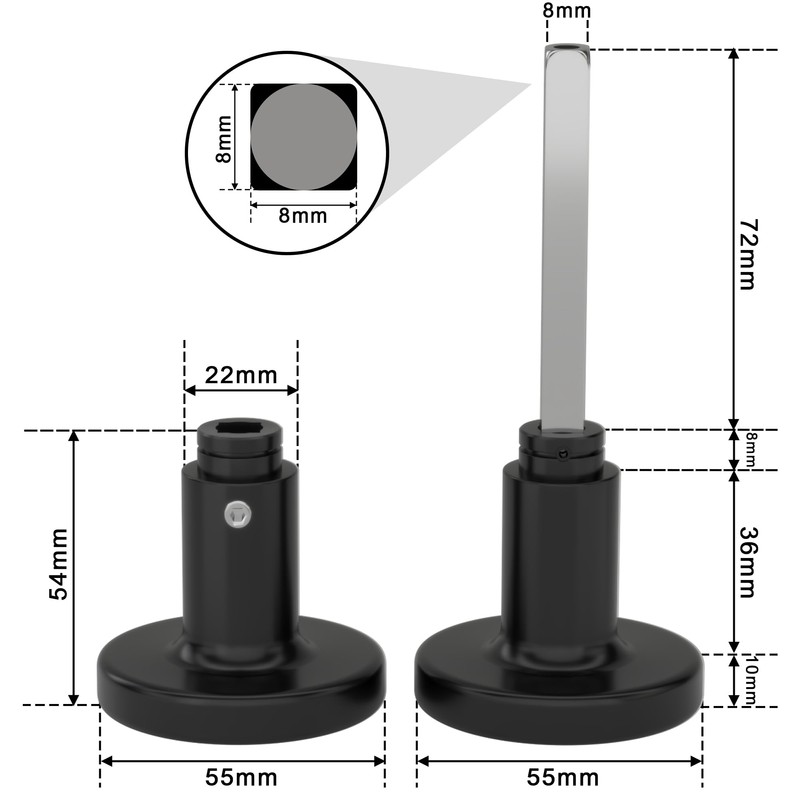 - 1 Minute Installation - One 8mm square bar is already firmly attached to a door knob, the other end knob can be freely adjusted according to the door thickness and can be easily mounted with the Allen key included in the package. You can also shorten the square bar as needed so that the door knob fits perfectly on the door.