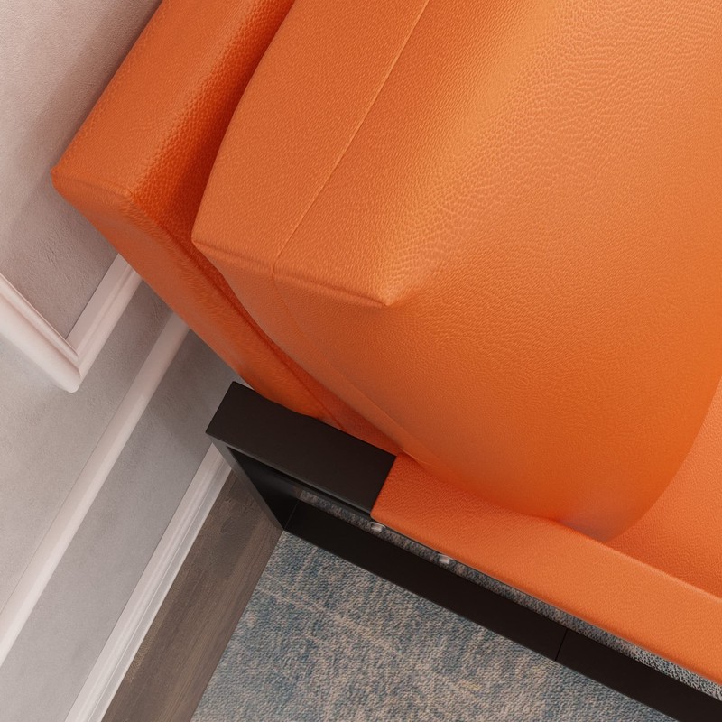 AWQM Mid-Century Modern Solid Loveseat Sofa Upholstered Faux Leather 2-Seat Couch Metal Armchair Accent Chair for Small Space Living Room, Bedroom, 105 Degree Slant Back, Easy-Assembly, Orange