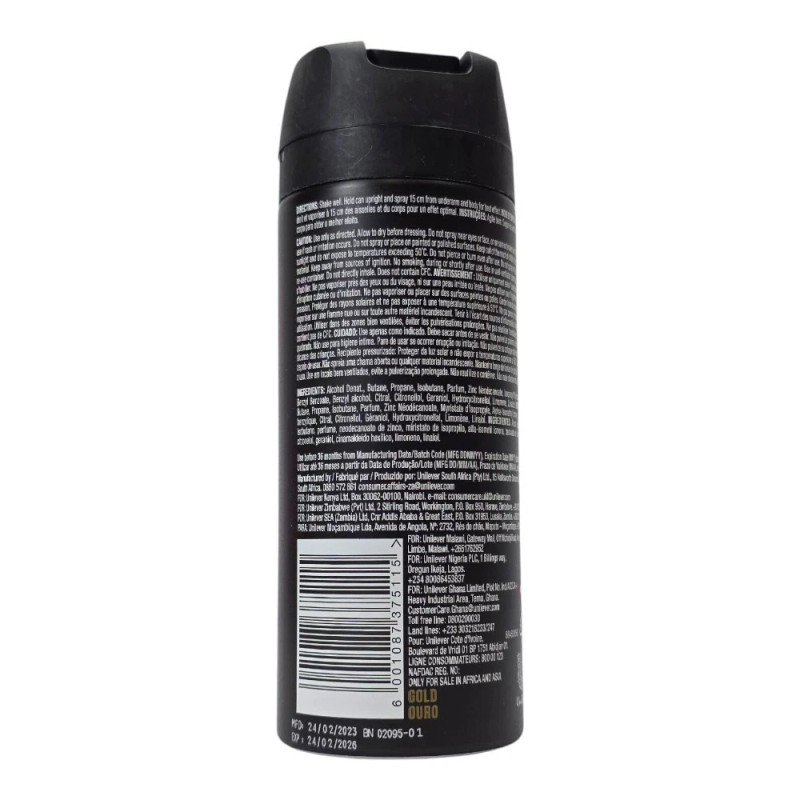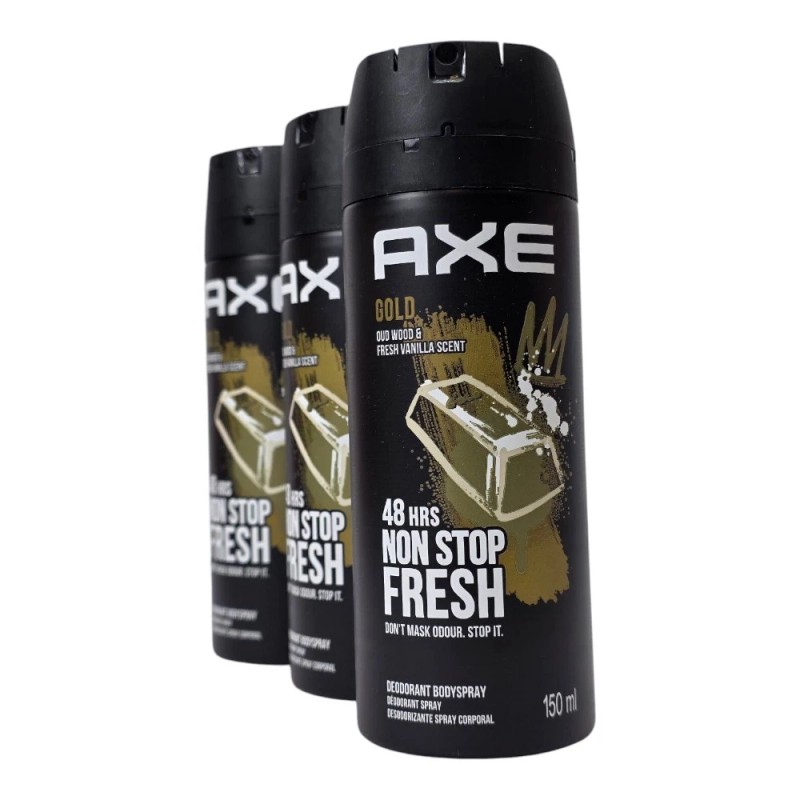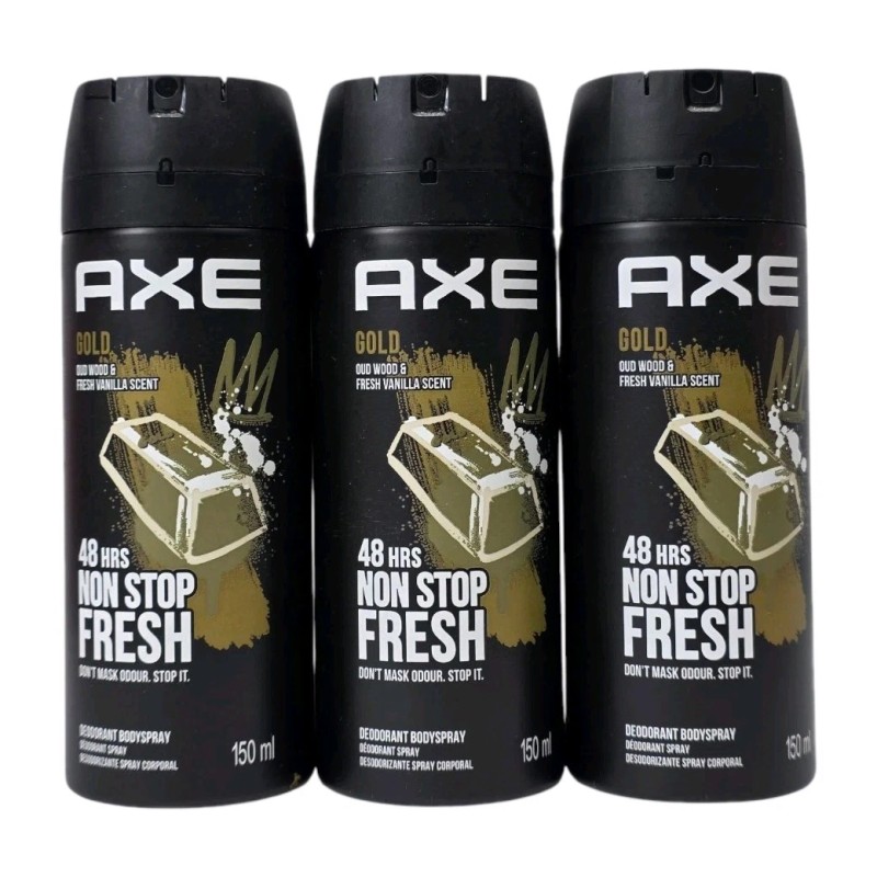 3 Pack Axe Spray Gold Oud Wood Men Deodorant Body Spray Fresh 150ml (5 oz)