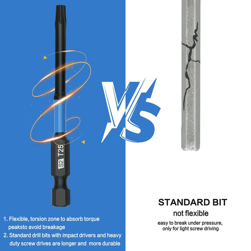 • 【Common Specification Sets】10 Pcs Torx Bit TT25 3inch Torsion zone to absorb torque peaks to avoid breakage. 10 times life expectancy versus standard bits. For impact driver, drill and screwdriver.
