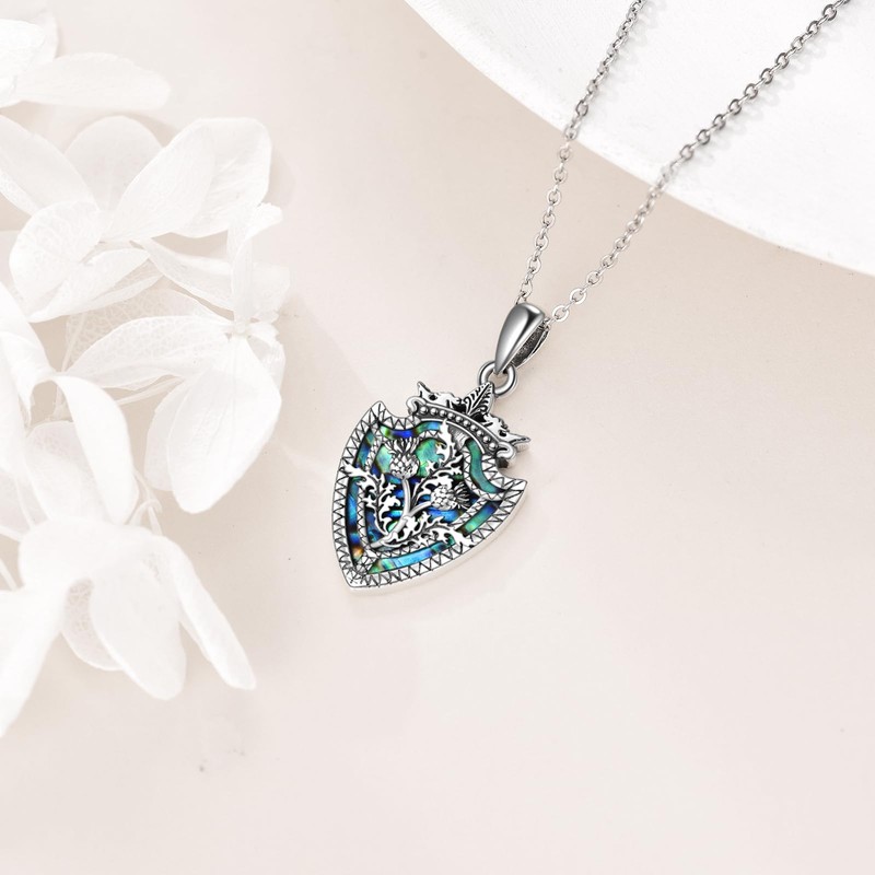 AXELUNA Scottish Thistle Necklace Sterling Silver Shield Abalone Shell Pendant Necklace Jewelry Gift for Women
