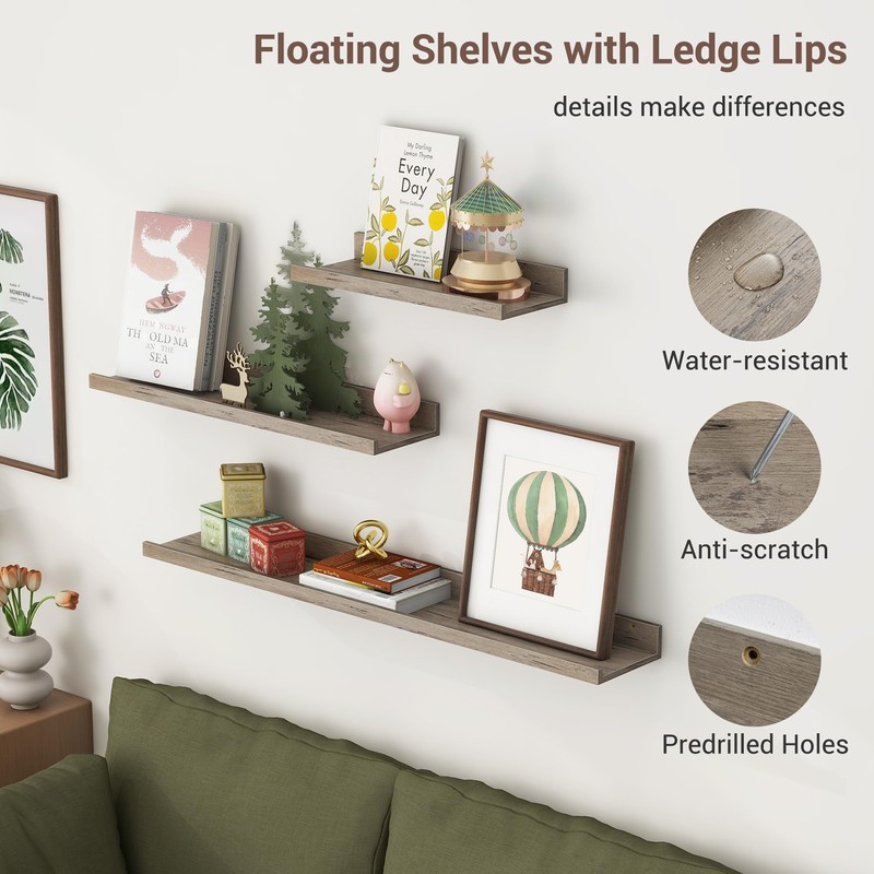 - Multifunctional Floating Shelves-Our floating shelves for wall with special baffle design allow you to safely exhibit your collectibles and photos but no worries about slipping off! Wall shelves with 3 different depths store many items and have no affection for the aesthetics when displayed on the wall