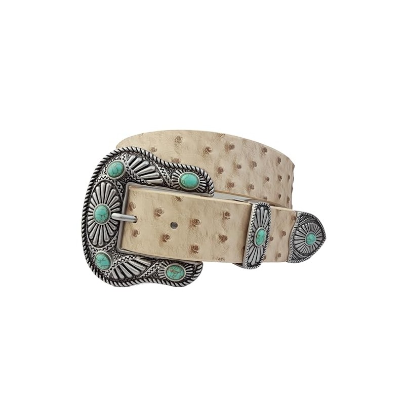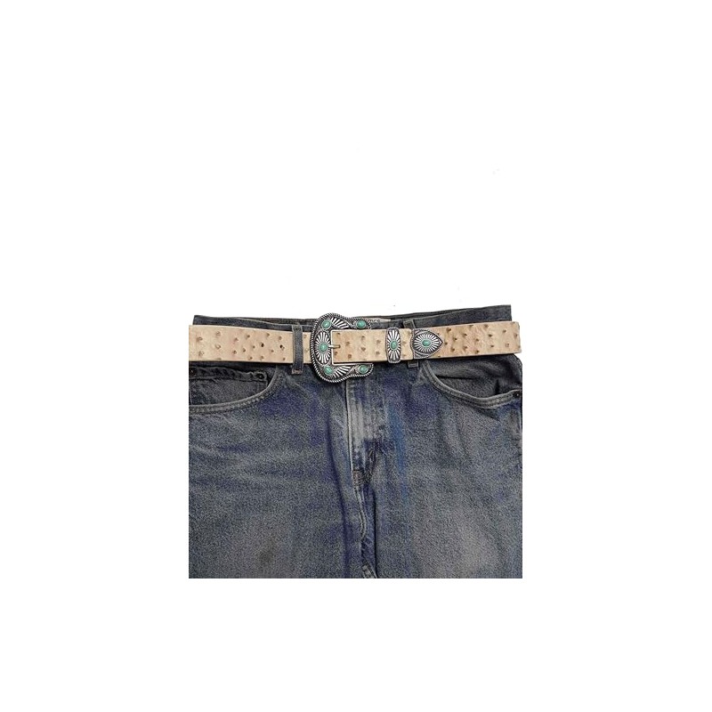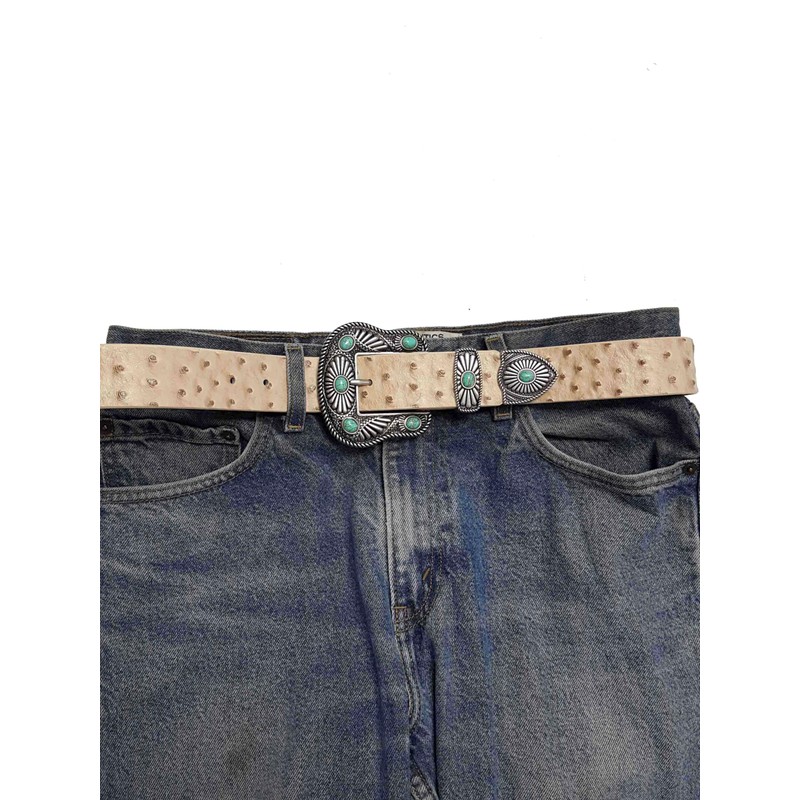 AXESORIA: Ostrich Printed Belt Western Beige L/X