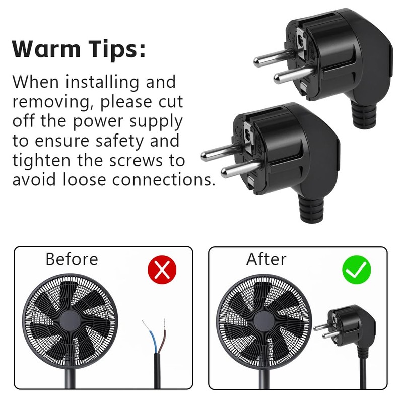 - Easy installation: the plug is easy to set up and requires no additional tools. It is easy to disassemble and install: loosen the screw with a screwdriver, connect the metal wire to the corresponding slot, tighten the screw to the slot, close the housing and tighten the screw again, you can use it without hesitation. The rubber head can be individually shortened depending on the cable diameter.