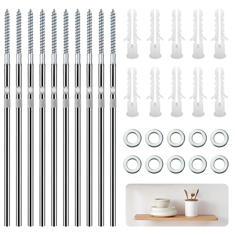 - Package: You will get 10 pcs floating shelf brackets, size Ø8 x 200mm/0.31 x 7.87 inch, with washers and wall plugs. The quantity is sufficient to meet your different needs