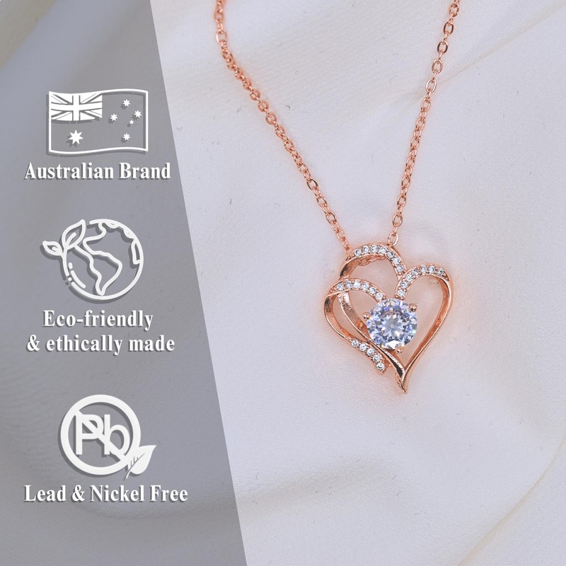 - ✨ 【ELEGANT ROSE GOLD HEART NECKLACE】 This dainty and romantic heart pendant features an intertwined double-heart design, symbolizing love and connection. Adorned with a sparkling cubic zirconia stone, this necklace adds timeless beauty to any outfit.