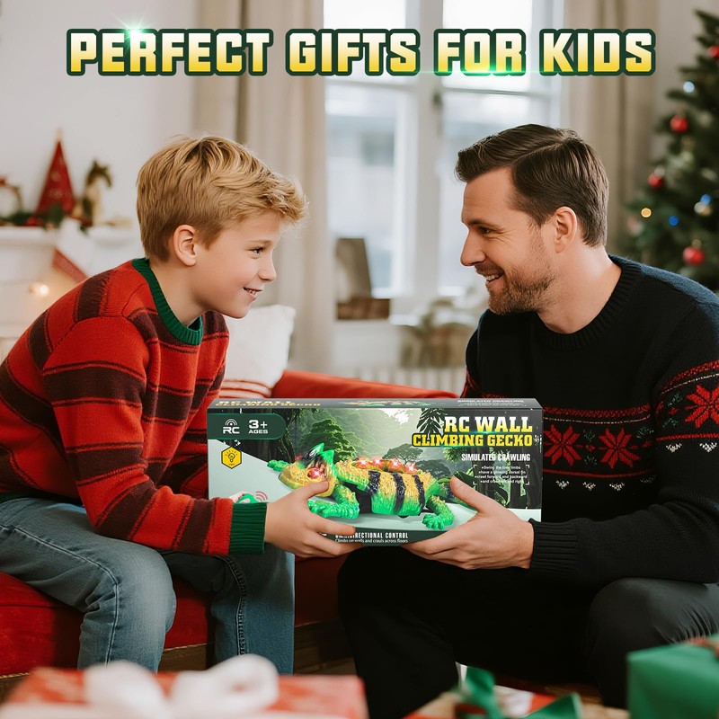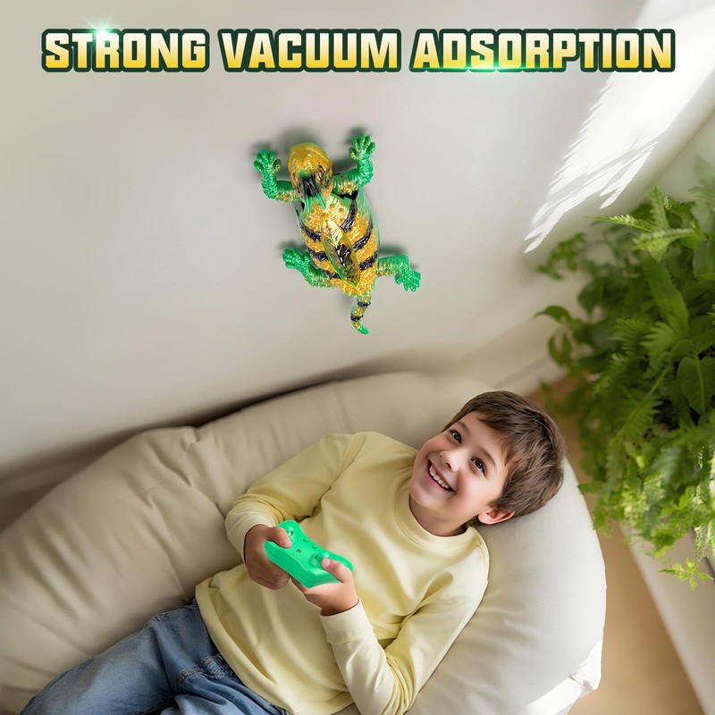 it's a ticket to endless fun and knowledge! Designed for kids ages 3 &UP, this lifelike wall climbing gecko crawls on walls, glass and floors with amazing realism, thanks to its flexible limbs and smooth movements.The 2.4GHz remote ensures stable long-distance control, while glowing LED eyes and a back fin add extra excitement in the dark.