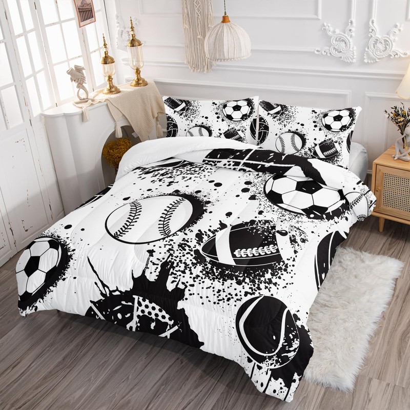 - 【3Pcs Ball Sports Comforter Set】 1X Comforter + 2X Pillow cases. ☞ PLEASE NOTE: No Pillow, No Sheet, No fitted sheet.