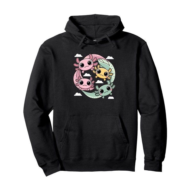 Axolotl Cute Axolotls Of The World Kawaii Children's Pullover Hoodie, black