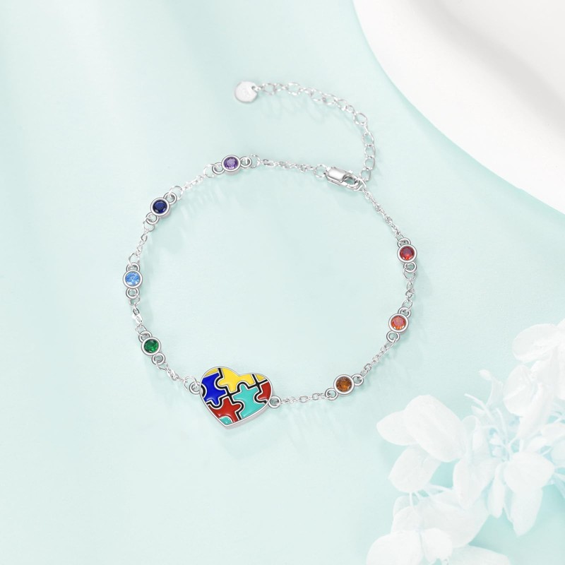 AXOMY Autism Awareness Bracelet 925 Sterling Silver 7 Chakra Puzzle Piece Heart Shape Bracelet ASD Autism Jewelry Gifts for Women