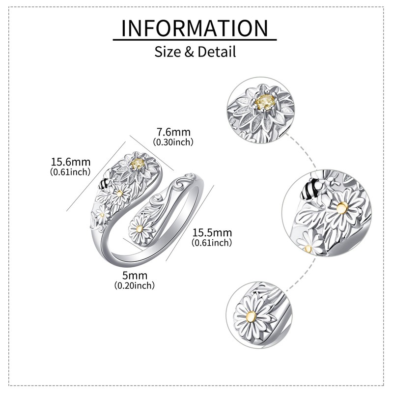 - Size and Package📦:The daisy ring is size 7(US). What you will receive: 1*daisy ring, 1*exquisite box, 1*silver cleaning cloth.