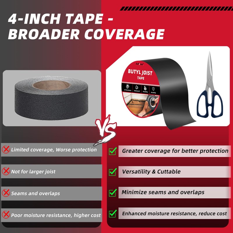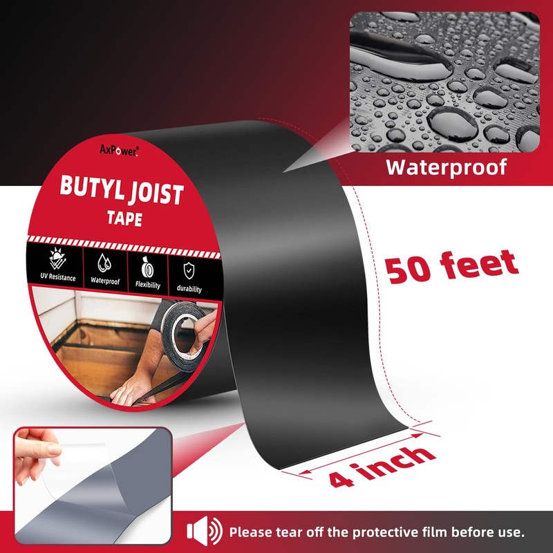 • 【4''×50'Joist Tape】 The joist tape set includes 4 rolls of deck joist tapes, each 4 inches wide and 50 feet long. With a total of 200 feet of tape, it provides ample material for various applications and can be easily cut to any desired length. Plus, At 4 inches wide, these tapes offer broader surface protection against moisture and wider applications.