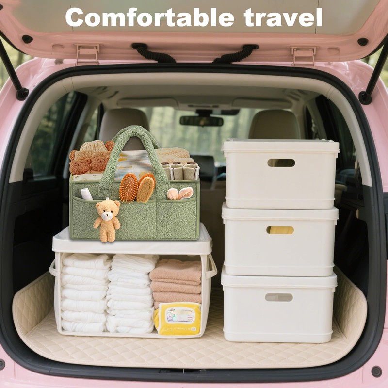 - Perfect portability for on the go: the practical plush changing organiser with small handles is equipped with comfortable carrying handles that allow easy transport. This mobile changing organiser is the perfect companion for trips, travel or visits to friends. The portable changing basket with removable compartments fits easily in the car and ensures order on the go. With this compact nappy caddy organiser small, you have all changing utensils always at hand.