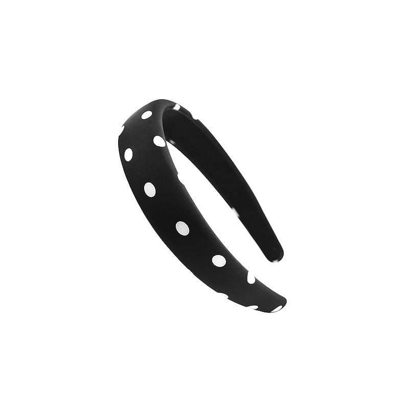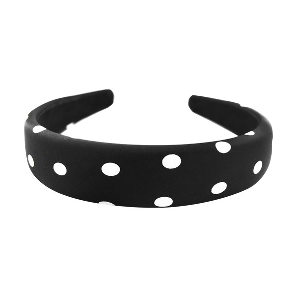 axy Wide Headband with Fabric Padded and Dots Pattern – Beautiful Women's Headband Hair Accessories Headband HRK2P (Black)