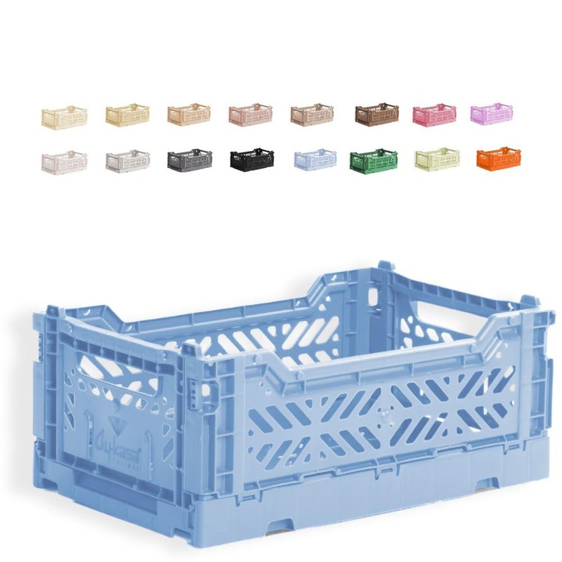 Ay-Kasa The Original Foldable Plastic Storage Container, Foldable Storage Basket, Stackable Boxes, Stackable Storage Folding Box for Kitchen, Toys and Office (Mini, Baby Blue)